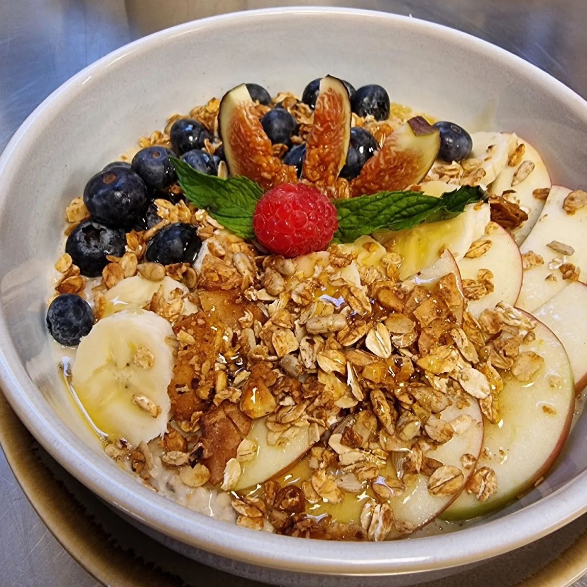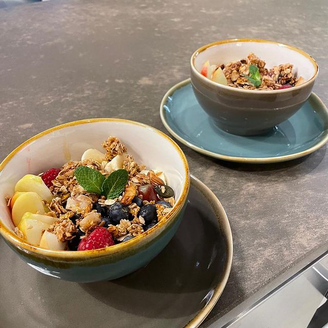 The café's menu is a carefully curated selection of fresh, wholesome dishes that cater to a variety of tastes. Start your morning off right with the Frühstück Bowl, featuring house-made Bircher muesli adorned with vibrant berries and crunchy granola, all for just €9.50. Or, opt for Das große „Ganze”, a generous breakfast platter including a delicious Dinkelbaguette, creamy cheeses, savory meats, and a soft-boiled egg, perfect for those who enjoy a hearty start to their day at €14.50.